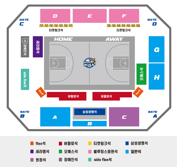 | 블루밍스 응원석 (D,E,F 구역) |